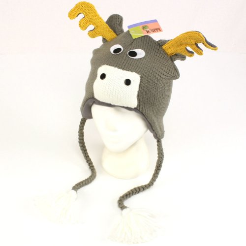 Newest Fashion Soft Knit Moose Head with Antlers Trooper Trapper Pilot Aviator Hunter Ski Winter Skate Hat Cap Fun animal characters. Ultra Plush, interior fleece interior lining, great quality. Luxuriously soft, super warm. No animals has been hurt to make the hat. Animal friendly product. A must have this season, the latest fashion. New patterns, brighter colors and new redesigned comfort fit. Front 3d knit animal with fluffy nose and antlers, braided chin strap and tassel. Comfortable fit, Great for teens & all. Also available in child sizes. Matching accessories in our store, scarves, earmuffs and gloves, booties etc..