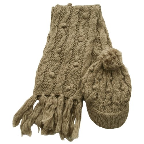 Cheap Cable Knitted Hat and Scarf Set-Taupe W31S40C Discount Review Shop
